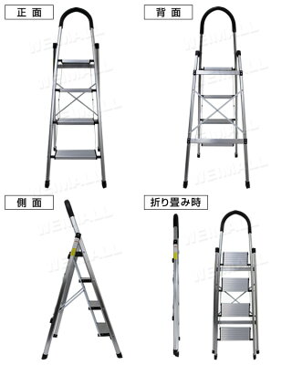 【送料無料】脚立 4段 アルミ 踏み台 折りたたみ おしゃれ 軽量 折りたたみ脚立 持ち手付き ステップ台 ステップラダー はしご 梯子 ステップ 大掃除 洗車台 送料無料