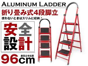 はしご 折りたたみ 4段 レッド/赤 【ハシゴ 梯子 脚立 フッドスツール 踏台 踏み台 ステップ 洗車 掃除 折り畳み 持ち運び スチール】