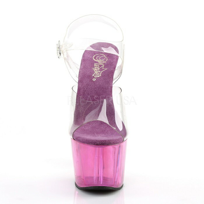 Pleaser プリーザー サンダル 厚底 18 cm ヒール 透明 クリア 紫 パープル アンクルストラップ 大きいサイズ 小さいサイズ セクシー ハイヒール ピンヒール キャバ ドレス ポールダンス 衣装 イベント シューズ レディース メンズ ADORE-708MCT ADO708MCT/C/PP 取寄