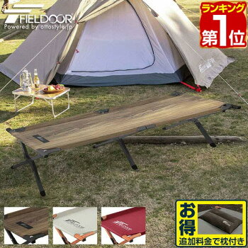 1年保証 アウトドア 折りたたみ ベッド コット ベンチ レジャーコット 枕 ピロー チェア 椅子 イス キャンプ [約]190cm x 69cm x 40cm 荷物置き 簡易ベッド キャンプ用 寝具 outdoor cot 組立 設置 簡単 FIELDOOR ★[送料無料][あす楽]
