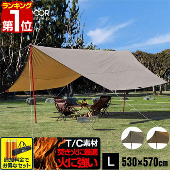 1年保証 タープ テント 530 x 570cm タープテント ヘキサタープ T/C ポリコットン Lサイズ 6 - 8人用 大型 テントポール ヘキサゴンタープ 収納バッグ付き 日よけ 防カビ 撥水 6人 7人 8人 ヘキサ 簡易テント アウトドア キャンプ用品 TC FIELDOOR ★[送料無料]
